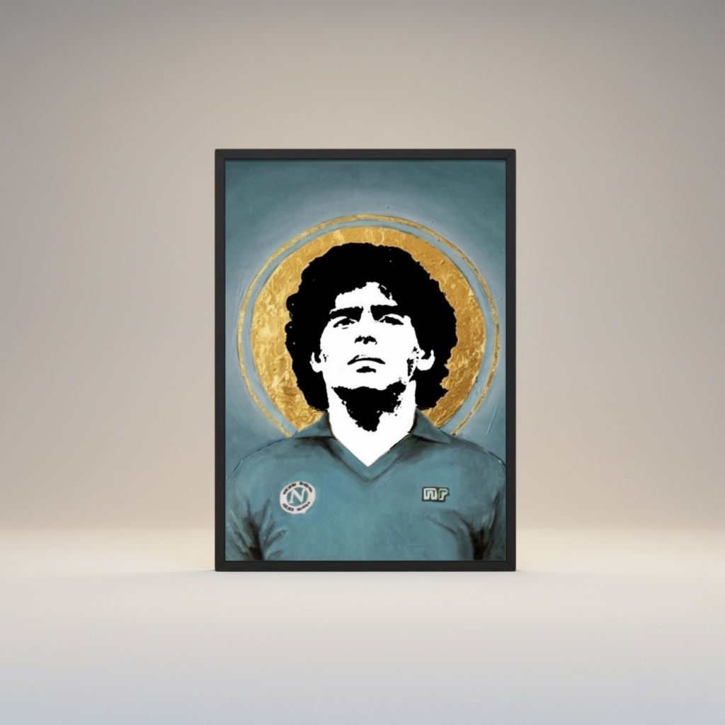 Diego Maradona : leggenda del calcio, " El Pibe de Oro " ; il piu' grande talento di tutti i tempi. Le nostre cornici di dimensioni 30x40 cm sono realizzate con cura e passione per incorniciare i momenti epici della storia azzurra.